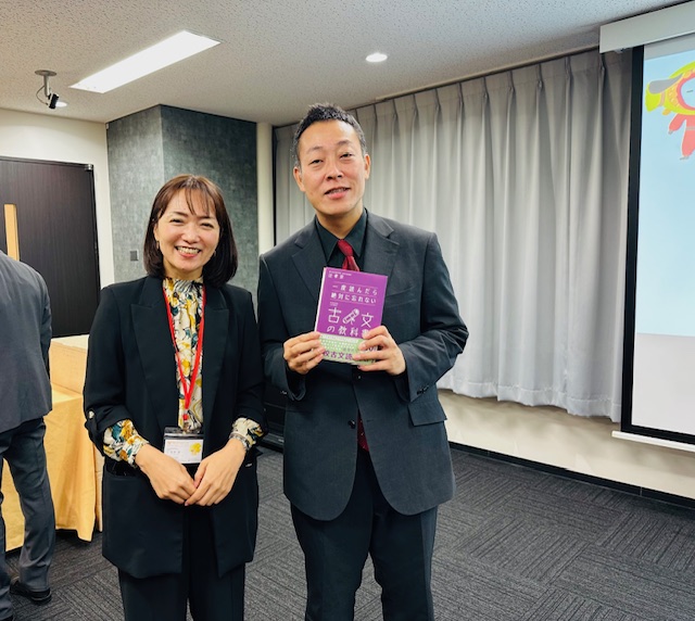 それにプラスして、地図が読めない、老眼で見えない、こんな老いぼれた母を目的地まで娘が連れて行ってくれる、これまたありがたい介護付き宿泊先から会場入りした先で、表題の『一度読んだら絶対に忘れない古文の教科書』の著者、辻孝宗先生にお会いし、お話を聞かせていただけました。