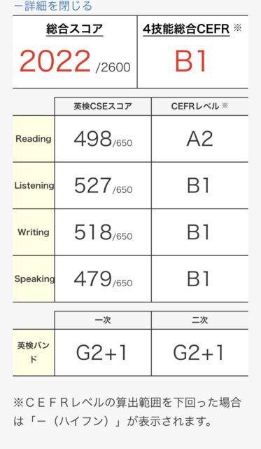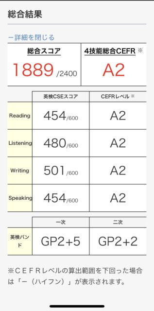 ここで勉強の意欲を落とさないためにも、リーディングはA2レベル(準2級)であったことを、謙虚に受け止め、そこのレベルを上げていき、来年にはもっともっと語彙力は増えていきますし、リーディング力も上がります。