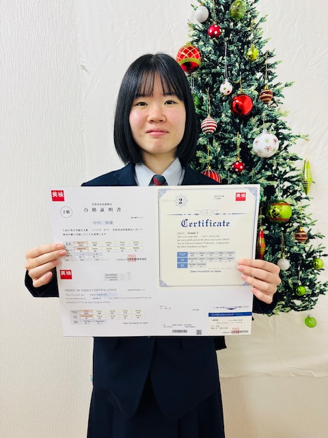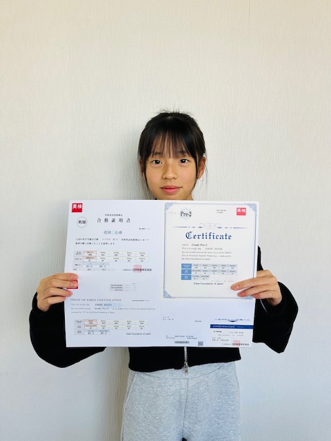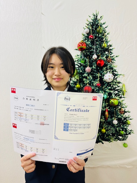 彼女は広島県内準2級受験者上位2%の中に入る高得点で合格しました。